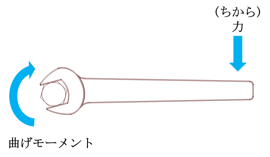 図のようにスパナでボルトを回すとき、持ち手が長いほうが楽に回すことができます。